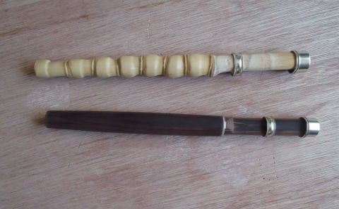 布袋竹・黒檀グリップとリールシートの竿です 穂先の細い節のところで折ってしまい 4フィート8インチの長さ(144cm)になりました やややわらかめで#3~4のラインが良いかな・・ 当初の構想とは違って短い竿になってしまったが これはこれで良いです・・ |