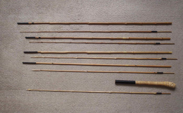 布袋竹のルアー竿です、小さなガイド4個の取付には難儀しましたが 良い竹材で・・仕上がりには満足してます |