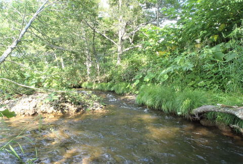 | 6月の最終週に八雲のセイヨウベツ川に釣りに行こうと思っていたが・・大雨で川は増水・・中止。 今時期はピカピカの良いヤマベが釣れる時期なのだがなァ 今週はパッとしない天気予報です・・次の週もどうなるかわからない。 2週間も釣りをしていないのです・・まあ・・行ってみるか・・と 車に釣り道具と寝袋を積んで午後、家を出る。 途中、蘭越くらいまで雨がパラツキ・・道路は雨が降ったのか所々濡れていた 黒松内は晴れていた、 朱太川の支流の支流の白井川で 夕方の時間少し竿をだしてみることにしました。 7月5日(火) 白井川 16時、昭和橋から5フィートの布袋竹の竿で川に入る 水量はこの川にしては少し多いようです すぐの流れ・・小さなヤマベ・・が釣れた。 |